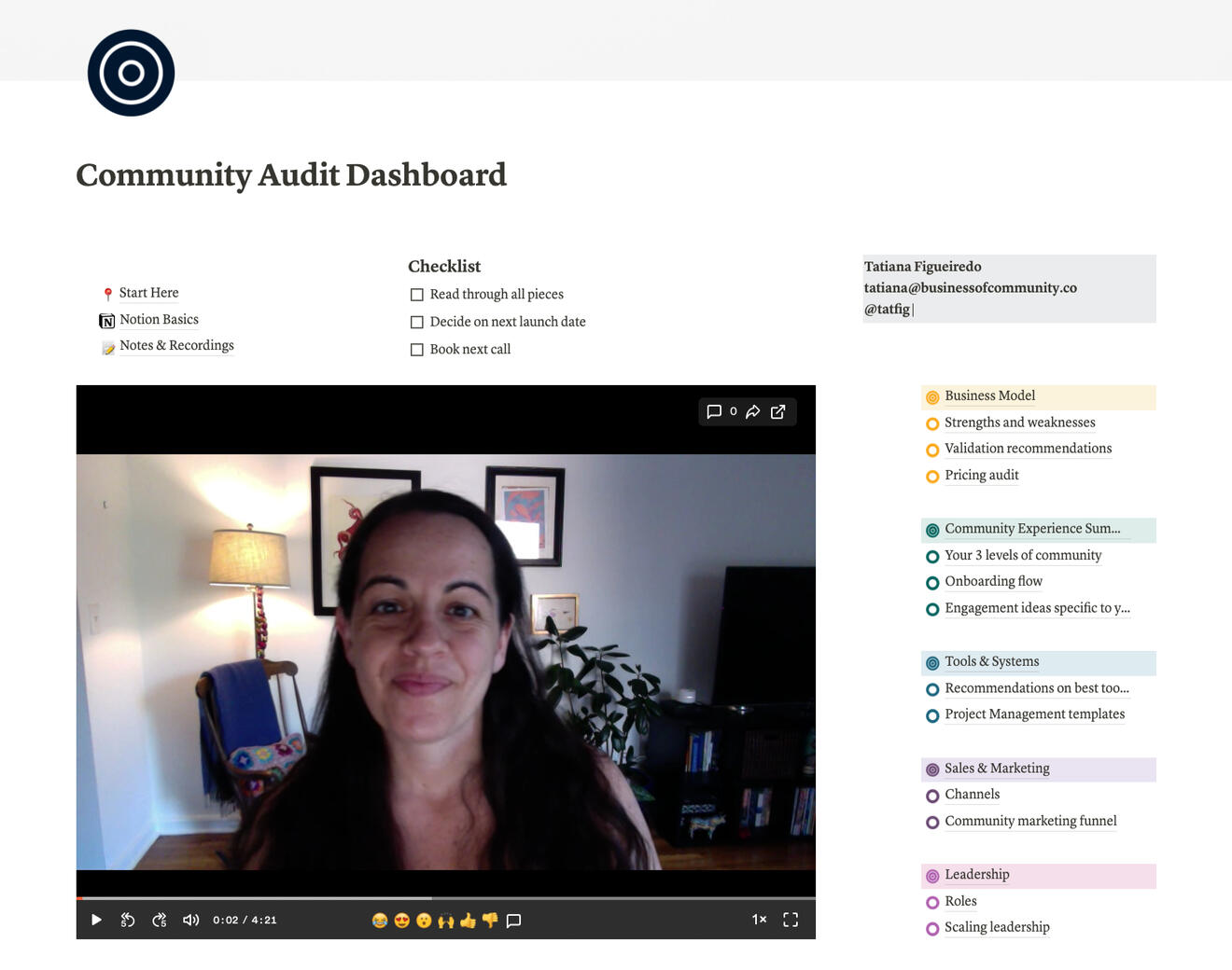 Business Model, Community Experience, Tools & Systems, Sales & Marketing, and Leadership, with a deep focus on the 3 of your choice.*Includes: 1 intro session, detailed report, 1 implementation session and 2 weeks of async support over email. *$5000 for full analysis and report, 3 weeks